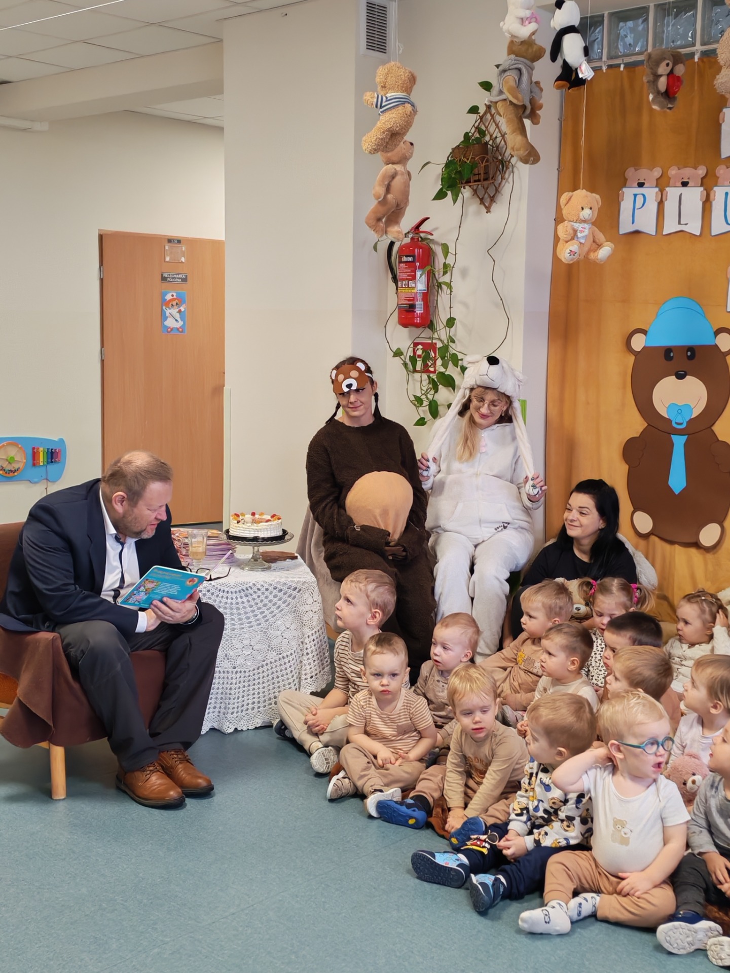 Palcówkę odwiedził Pan Zastępca Burmistrza Tomasz Krawczyk, który z wielką życzliwością poświęcił swój czas, aby przeczytać dzieciom bajkę specjalnie na tę okazję – pt. "Dzień Misia" Wisława Drabik.